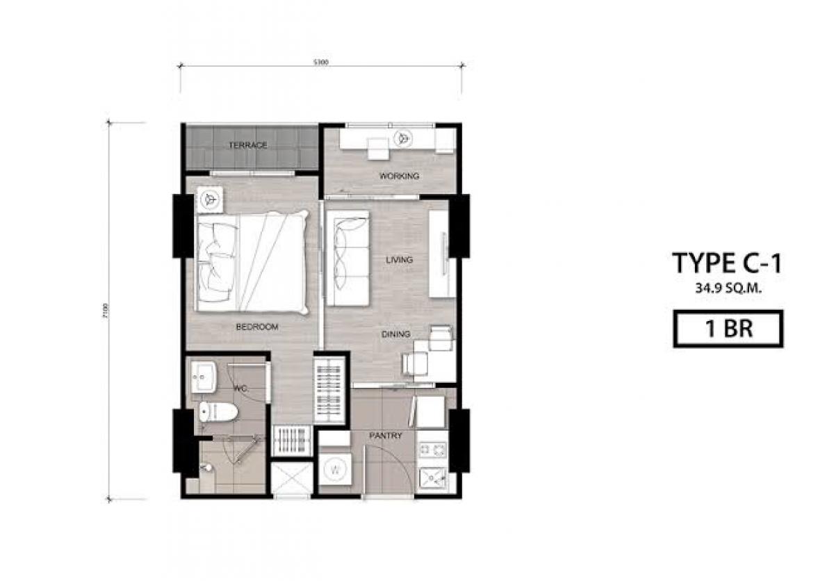 เป็น 1 bed plus มีห้องทำงาน ห้องอ่านหนังสือ